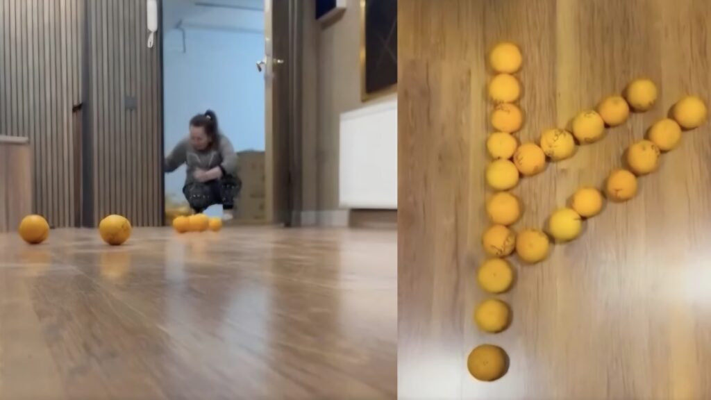 არ ვაგორებთ ფორთოხლებს ტუალეტში/აბაზანაში,საკუჭნაოში, აივანზე მაგრამ შემოვაგორებთ დანარჩენ ოთახებში და სამზარეულოში. თუ სახლი ორსართულიანია, მას ორივე სართულზე ვაგორებთ (უბრალოდ გავანაწილებთ მთელ ბინას ისე, რომ თითოეულ ოთახში იყოს რამდენიმე).
