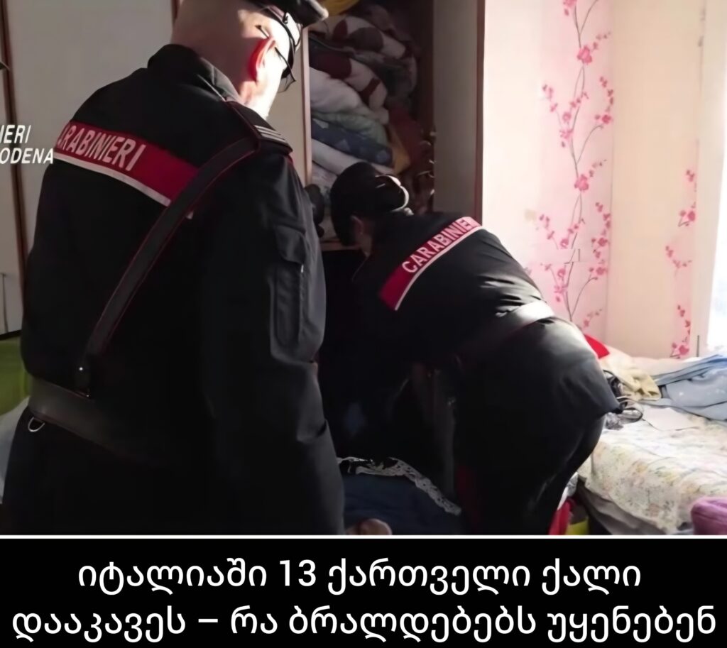 საერთო ჯამში, გამოძიება 44 ქართველი ქალის საქმეს იძიებს. მათ ბრალად ედებათ იტალიის ტერიტორიაზე არალეგალური შესვლა და ყოფნა, ასევე პირადობის ფალსიფიცირებული დოკუმენტების ფლობა. ამ უკანასკნელი მუხლის გამო პოლიციელებმა 13 ქალი ადგილზე დააკავეს, თუმცა გამოკითხვის შემდეგ გაათავისუფლეს და ისინი გამოძიების შეწყვეტის გარეშე ზედამხედველობის ქვეშ რჩებიან.